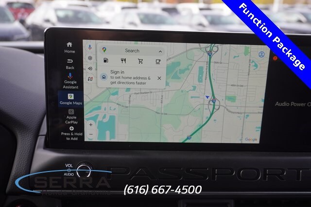 This Honda Passport comes well equipped and includes the following features and benefits, Black Emblems, All Season Mats (PPO), Cargo Cover, Cargo Net (PPO), Door Sill Films, Function Package, Navigation system: Google Maps. Factory MSRP: $47,465 $1,894 off MSRP!